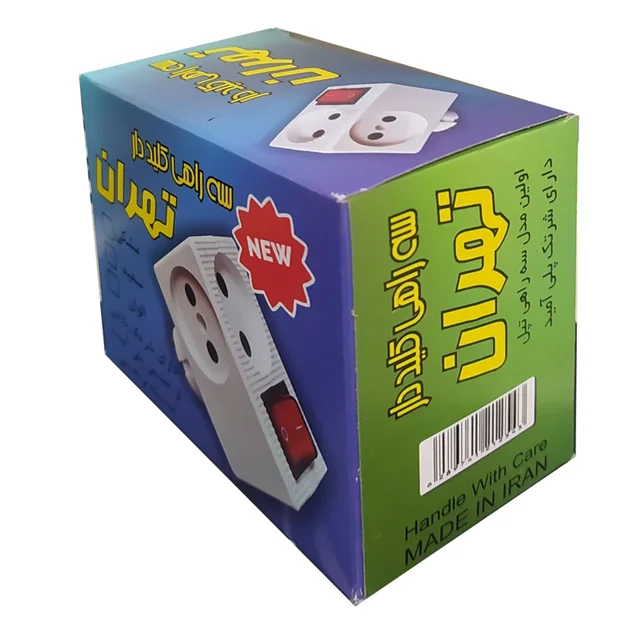 سه راهی برق تهران مدل کلید دار این محصول مجهز به سه عدد پریز دوشاخه میباشد دارای بدنه مقاوم از جنس پلاستیک و پلاتین از جنس پلی آمید بوده و دارای کلید روشن و خاموش میباشد.